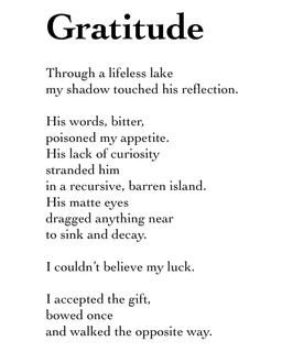 Through a lifeless lake my shadow touched his reflection.