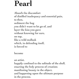 Absorb the discomfort of distilled inadequacy and essential pain, to then, sediment the hug you didn’t want to let go of, and layer the kiss you gave without knowing for sure, on top, like a wild mollusk which, in defending itself, is forced to