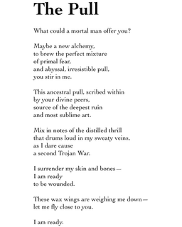 Maybe a new alchemy, to brew the perfect mixture of primal fear, and abyssal, irresistible pull, you stir in me.