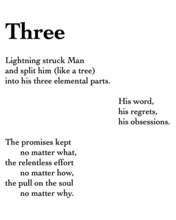 Lightning struck Man and split him (like a tree) into his three elemental parts.