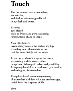 In the deep calm of the eye of our storm, we partially melt into each other, in a primordial soup of carbon and possibility. I shape my hands like a bowl to carry it outside, and so it goes, for some time.