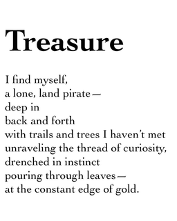 I find myself, a lone, land pirate— deep in back and forth with trails and trees I haven’t met, unraveling the thread of curiosity, drenched in the instinct pouring through leaves— at the constant edge of gold.
